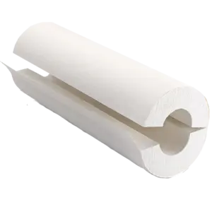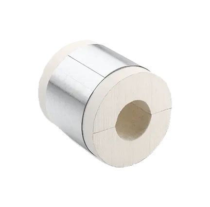 Therma-Phen® phenolic foam pipe insulation with factory laminated ASJ/SSL typically cut into 18” or 12” lengths and usually paired with a 180-degree steel saddle.