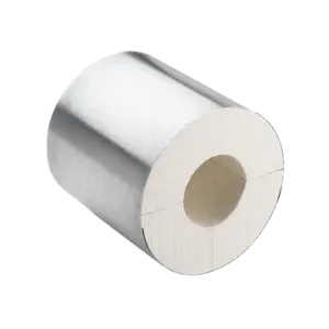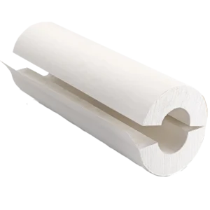 “TPSX-12® water resistant calcium silicate pipe insulation with ASJ/SSL and a two-piece steel shield that covers the entire circumference of the insert. A DOUBLE THICK steel shield is adhered at the load point. Insulation insert is 2” longer than the 360-degree coverage shield. This allows for improved adhesion of field-applied SSL tape to the vapor retarder of the adjacent pipe insulation providing a more predictably sealed system which is critical for below ambient process piping.”